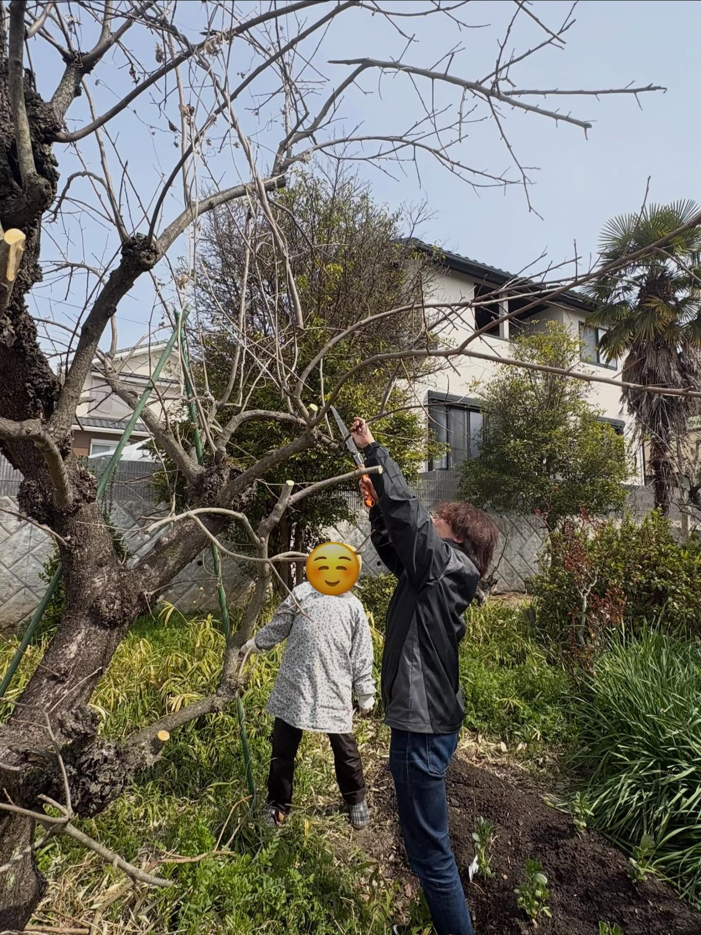 柿の木の枝を切るお手伝いをしたり、
